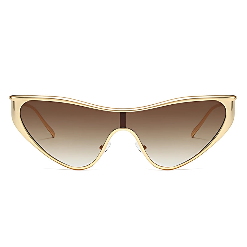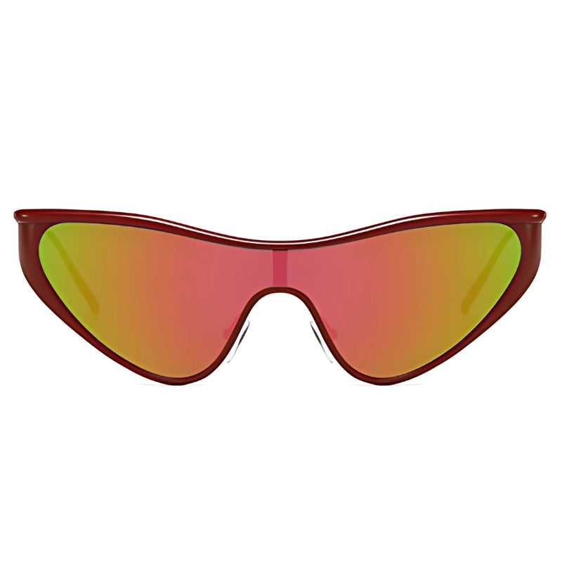 Progettati con una silhouette affilata e aerodinamica, gli occhiali da sole Velocity combinano un audace profilo a scudo con dettagli di precisione. La montatura angolare a forma di occhio di gatto offre una protezione UV400 a copertura totale e un tocco elegante e futuristico. Disponibili in una gamma di lenti sfumate e specchiate, questo stile offre un look ad alto impatto con una vestibilità quotidiana.